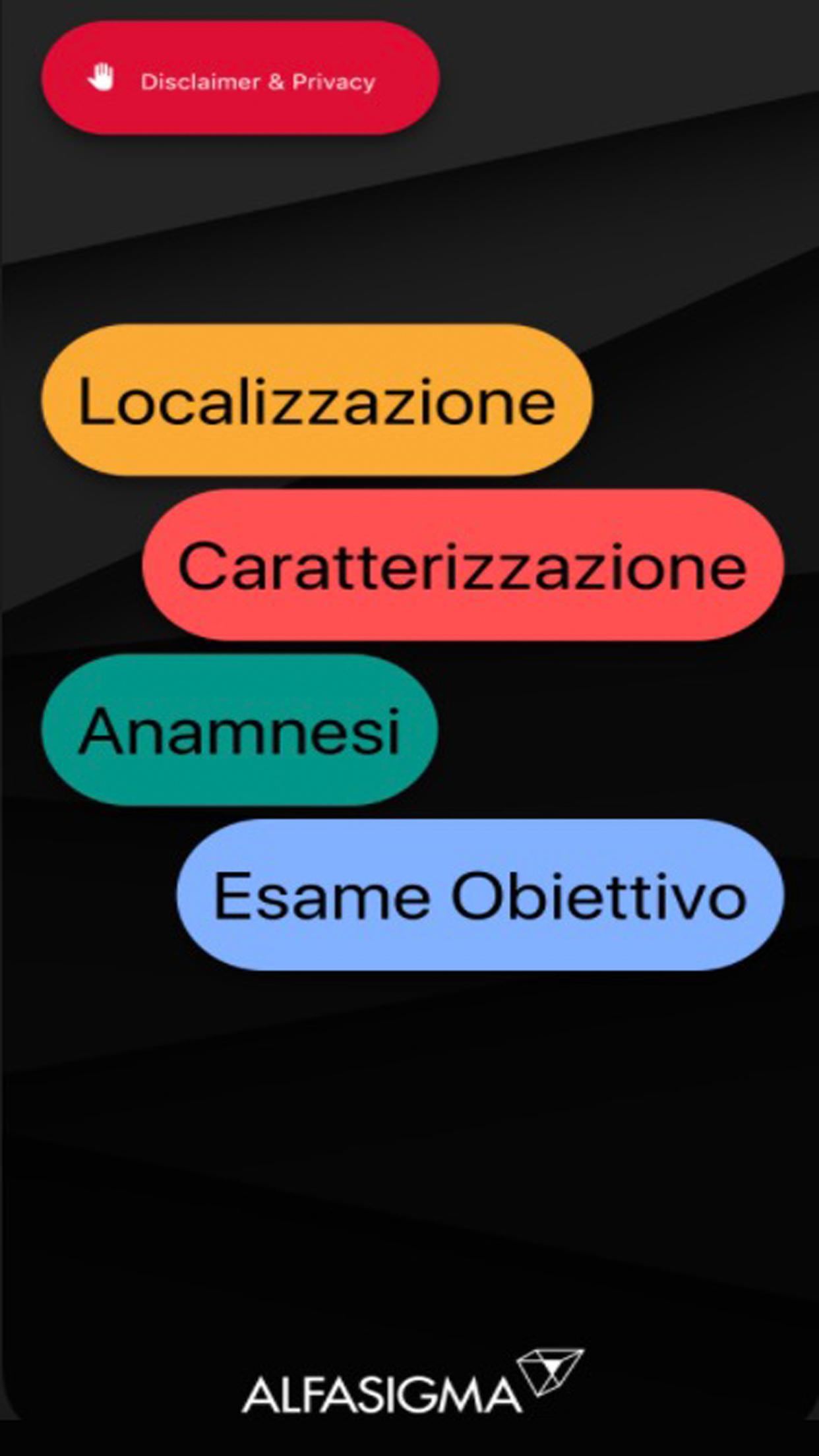 This app is dedicated to abdominal pain. In fact, numerous abdominal problems have an algic component and some have the main symptom in pain. In some cases then the characteristics of the pain can be of great help to formulate a diagnosis. The application is divided into four sections: