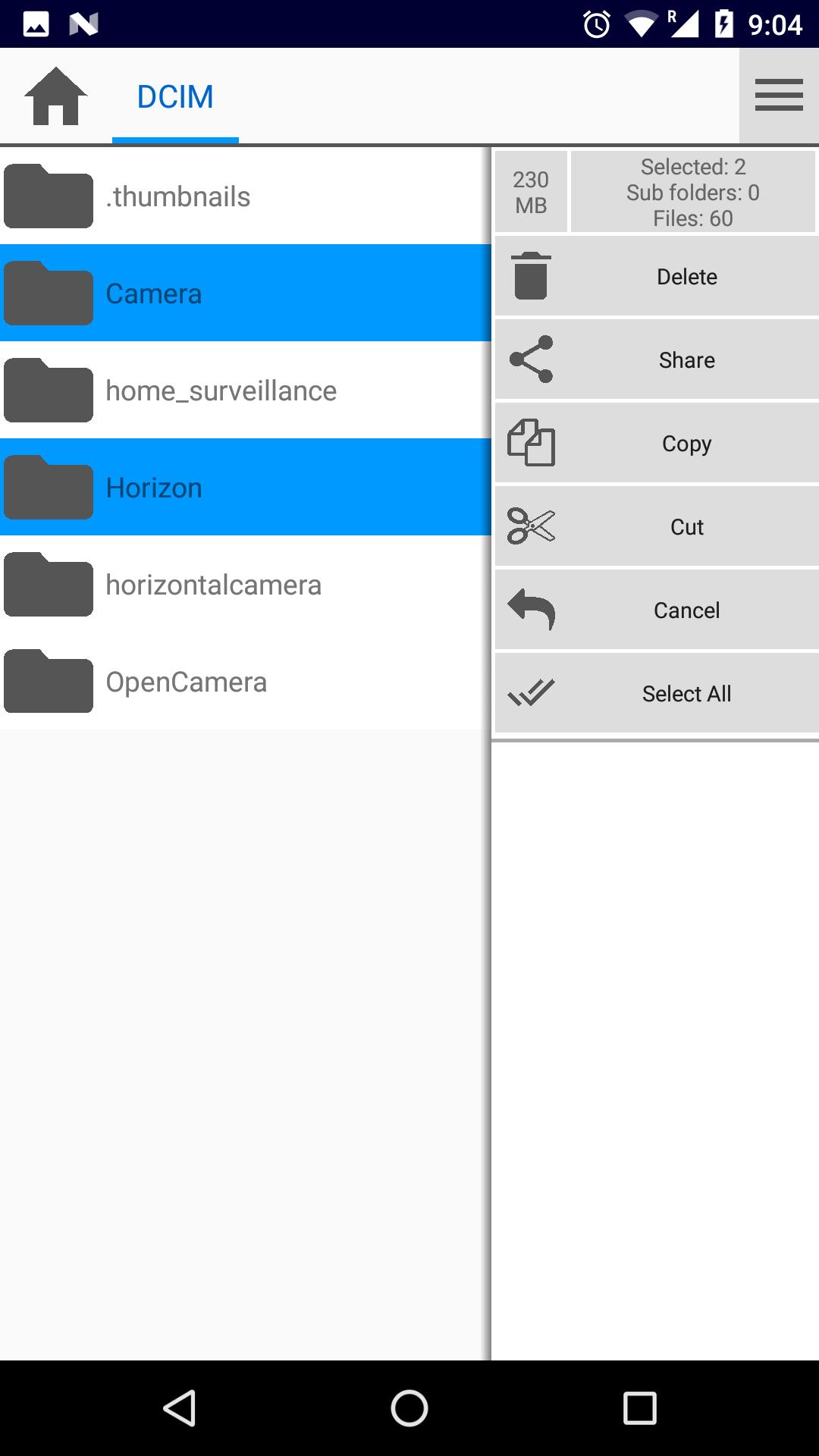 • Quick access icons for you SD card, Camera folder, Bluetooth folder, Downloads and Music folder.