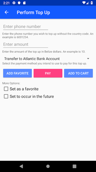 eCredit Belize allows you send phone top ups to any phone number in Belize.