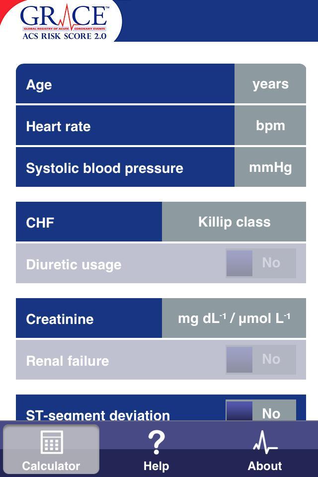 The GRACE Risk Score has been extensively and independently validated, but any medical decision must be based on a complete clinical assessment and not on the use of this risk calculator in isolation. Developed by AS&K Communications for the University of Edinburgh and University of Massachusetts Medical School.