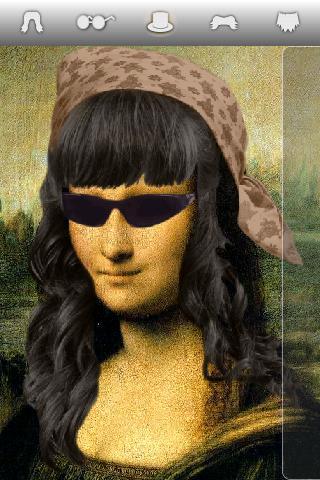 With Imprix, it’s very easy to do what you need! Just use an existing photo or take a new one with your phone’s camera, add any attributes that you want (for example, sunglasses, hair, and a moustache) tuning the color as you like, and send the altered photo by e-mail or via Facebook.