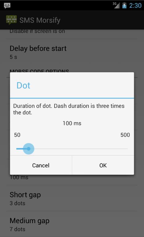You can set a delay before the start of the transmission, so that your normal Notification vibration does not interfere with the Morse code playback.