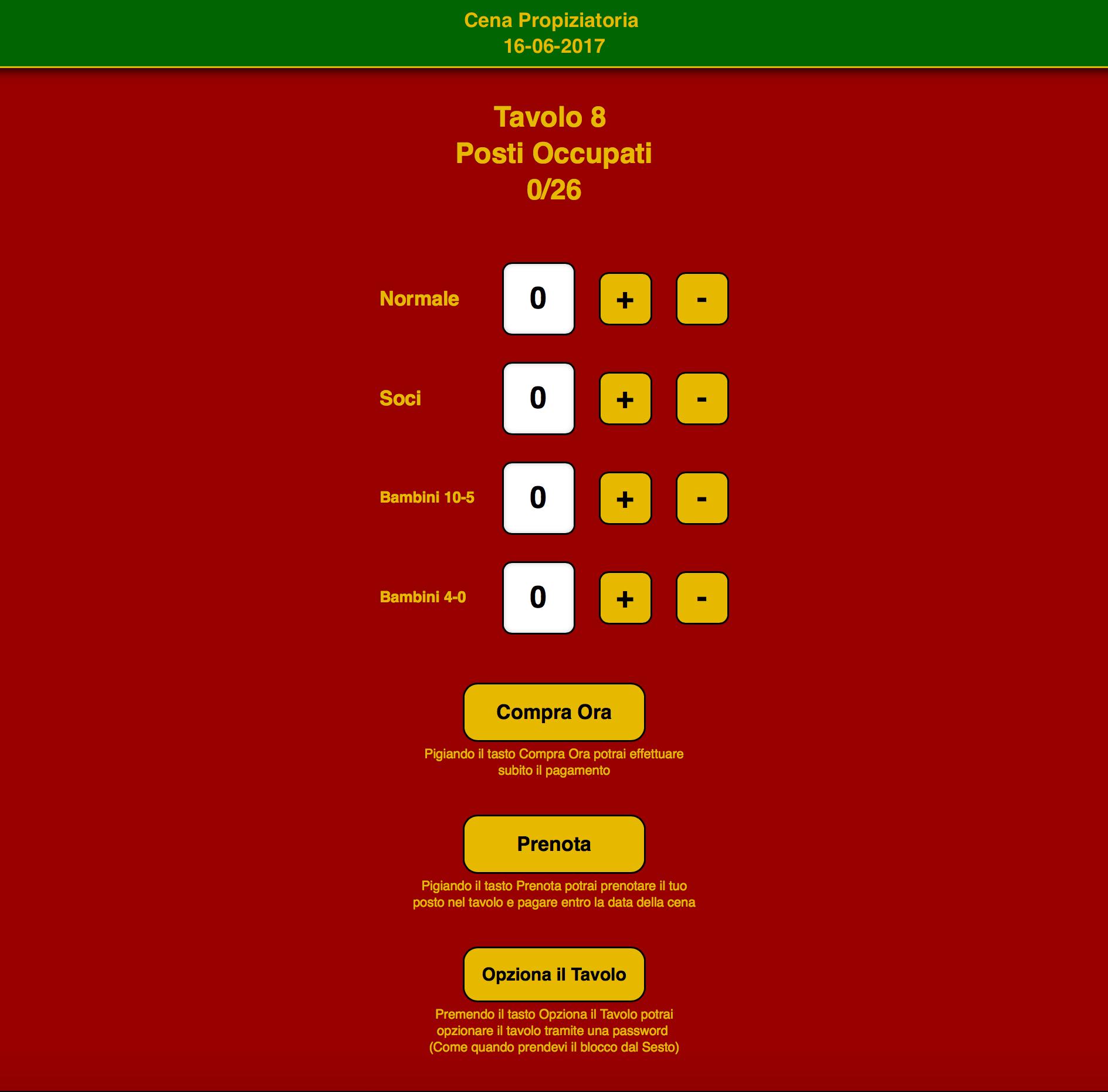 The application will allow you to book your place for the two large evenings of the week of the State Green Red State, the propitiatory dinner and the Maccherone dinner. You can book and pay your ticket immediately or book and pay later directly online or at the Fargo di Pagitrone by the Sestini Roberto manager.