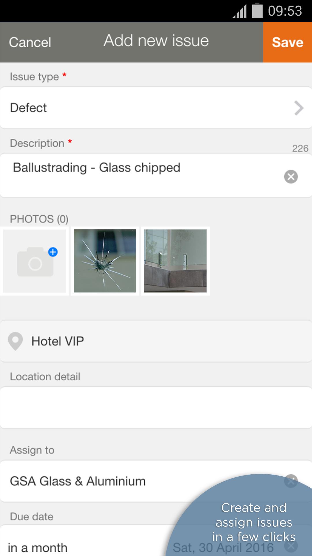 * Inspections: Instantly capture and assign issues. Attach and mark up photos to show exactly what needs to be fixed. Set due dates for completion.
