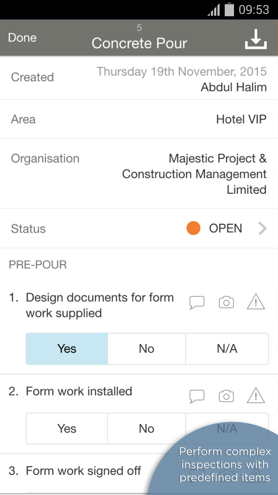 * Collaborative inspections: Instant turnaround to sub-contractors and other participants with access via their mobile device.
