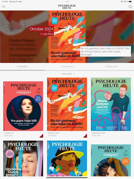 The app Psychologie Heute brings the monthly magazin to your tablet /smartphone.
