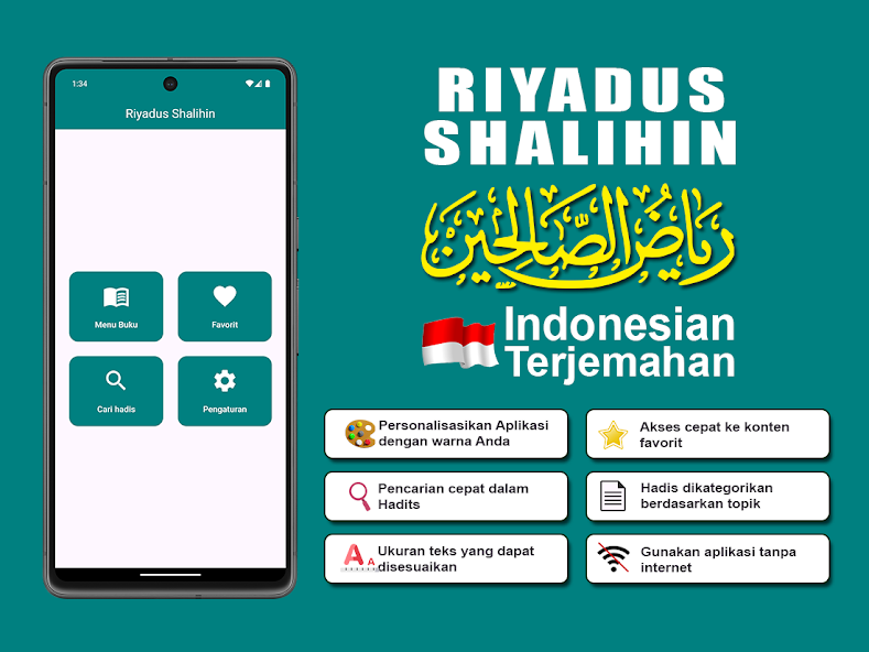 Riyadh us Salihin Free Islamic Hadis Offline eBook App for Muslims, Indonesian Translation. The book was compiled by Imam An-Nawawi who was the great scholar of Hadith and Fiqh of his time.