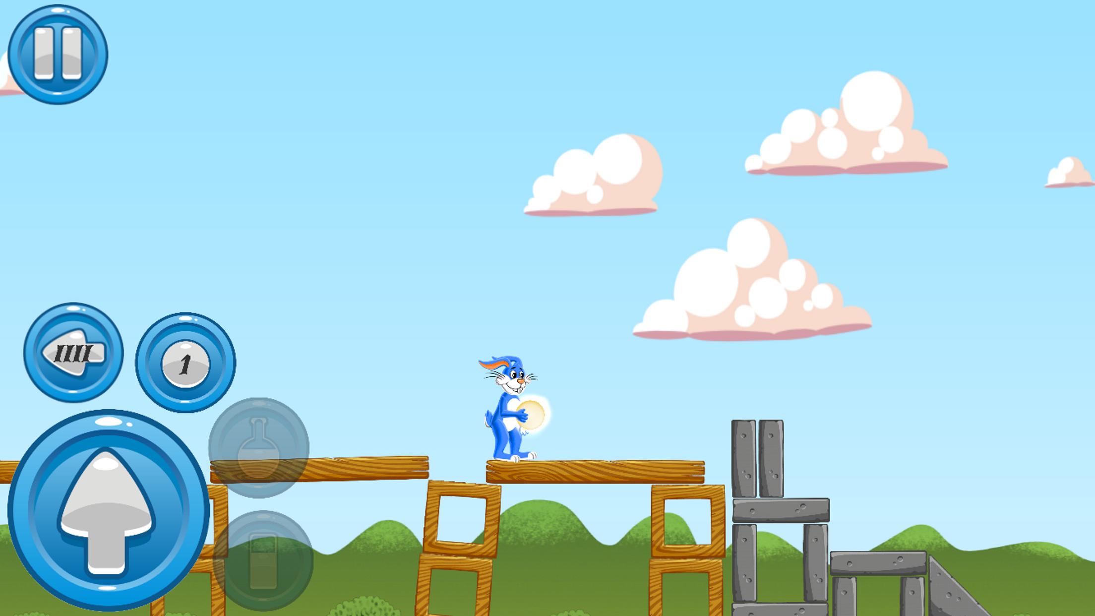 In the game GoBunBun is maneuvered across a brick world by using a touch control system, which makes him jump and use collected power ups. In order to pass to the next level he needs to collect at least one 'Carrotstar'. The 'MagicBall' is very useful for GoBunBun, because he can throw it onto the bricks. Also watch out for the 'Elixir' in order to get extra punching power and the 'Glass of Milk' for extra jumping power.