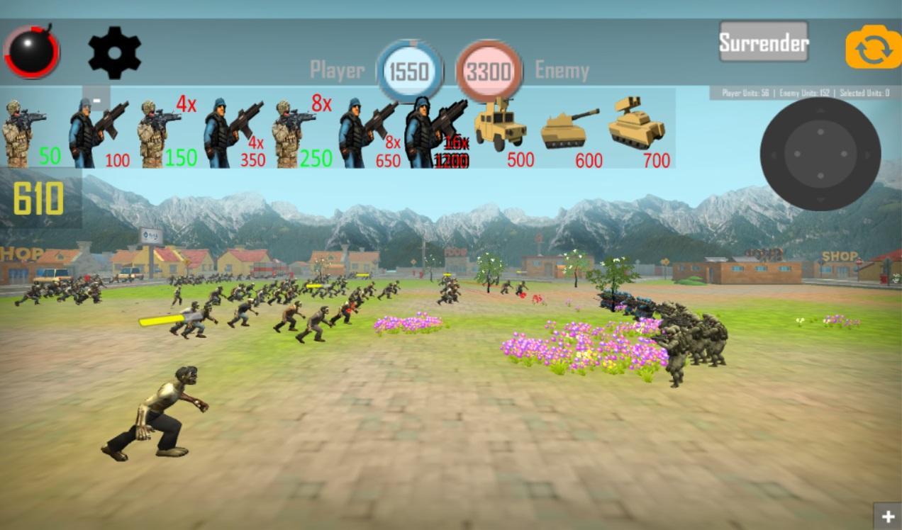 How to play: You have strong soldiers, tanks, humvees, rocket tanks against zombies. You are able to buy and deploy them based on your golds. You must select the unit you want to deploy and tap on screen to buy and deploy.