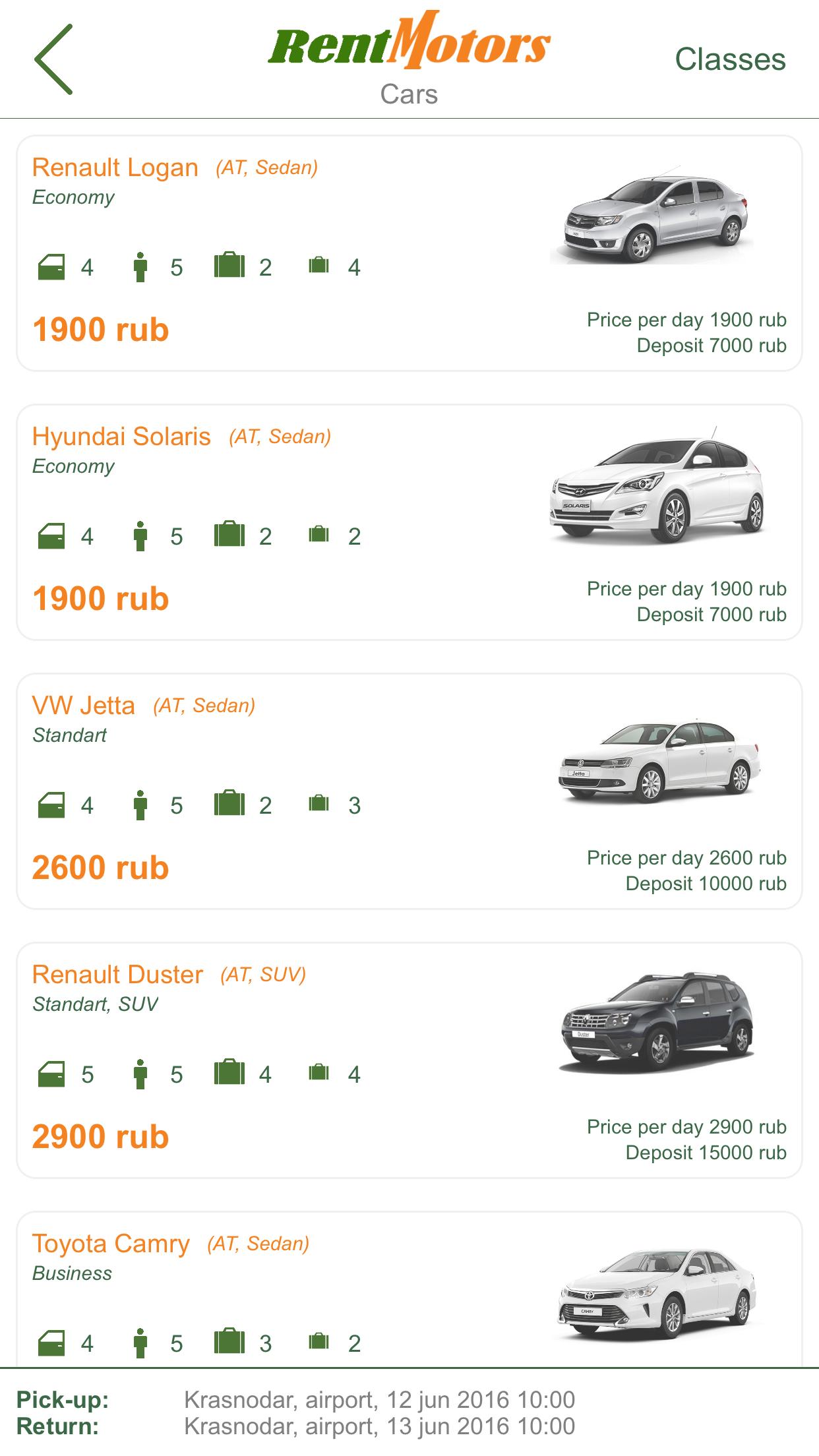 More than 1,000 different cars available to you different classes in Russia and Georgia