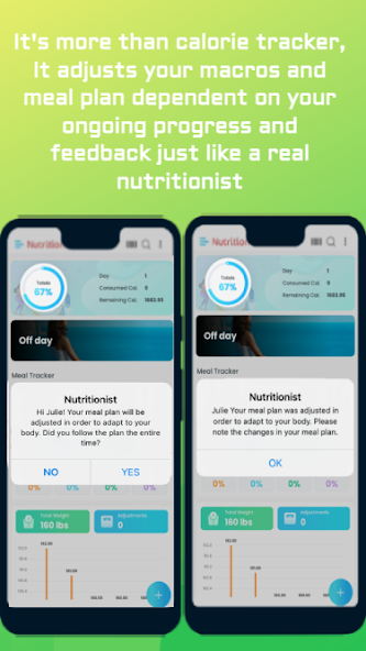 Nutritionist makes a tailored diet plan for you and AUTOMATICALLY adjust it when necessary based on your feedback and ongoing results