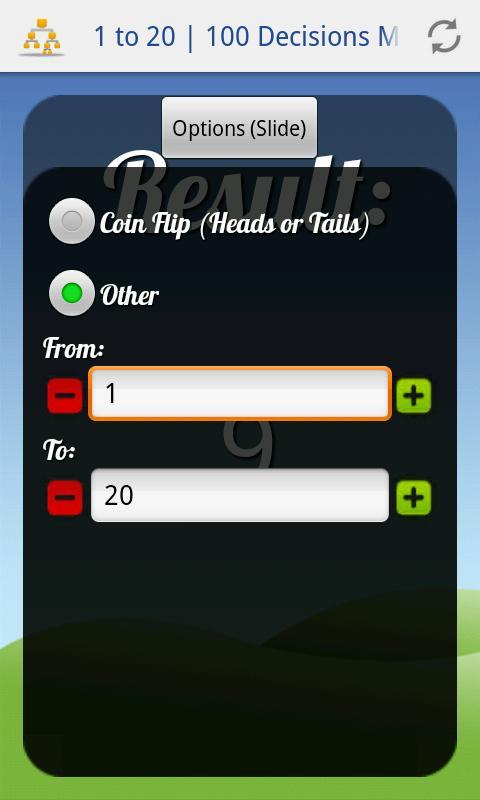 This application allows you to make a coin flip, or pick a random number between the limits you give it (example: 2 to 7).