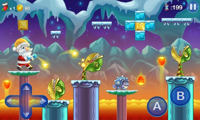 2015 is almost over and it is time for Santa to go out and work again. Yes, he does work once a year (we know), but he needs your help. Run around in this crazy world, avoid different kinds of enemies and help Santa overcome some crazy challenges. Christmas is almost here. What are you waiting for? Download Mega Santa and start celebrating a little early this year!