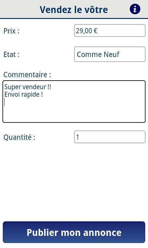 By scanning the barcode of your item with your phone's camera, you will directly access the corresponding product sheet. You can then quickly sell your product, simply indicating its price and its condition.