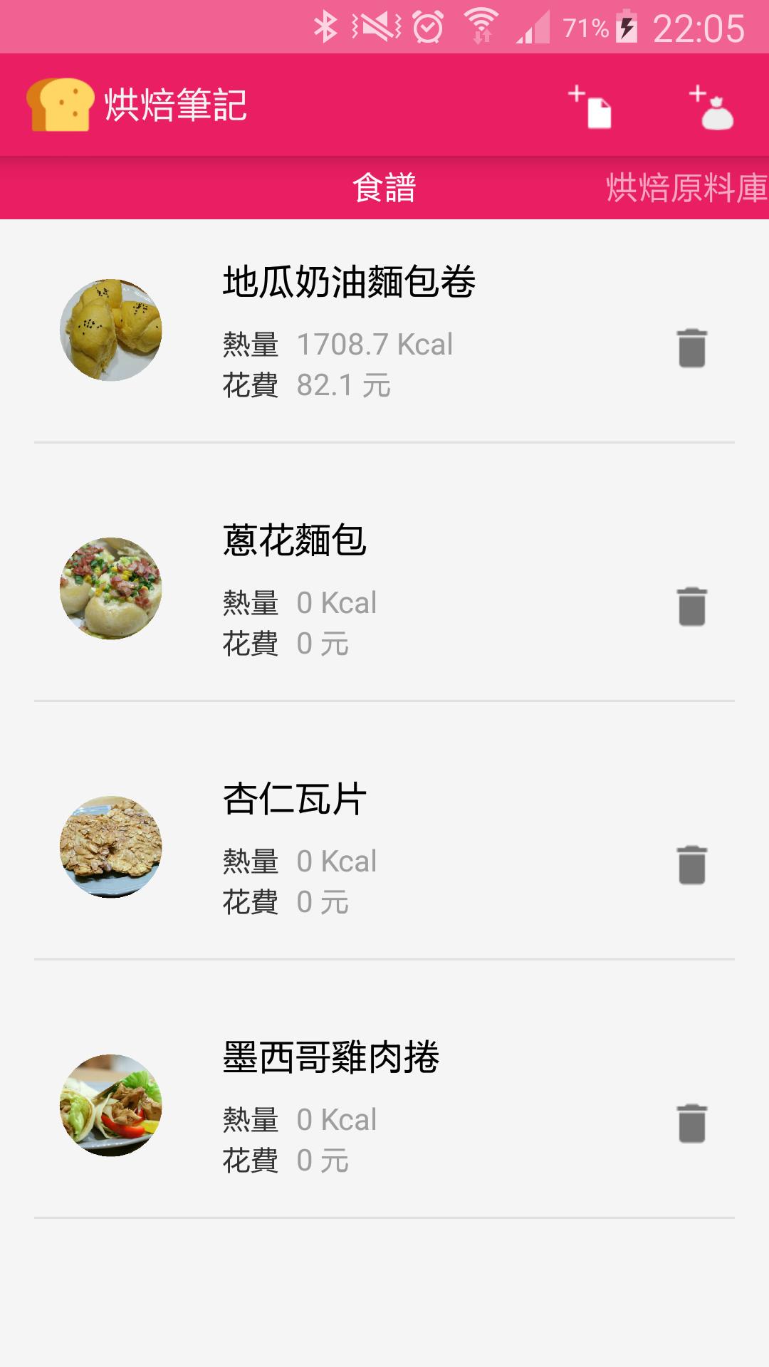 Baker Note can help you record the baking ingredients, calories and how much you spend for every recipe.