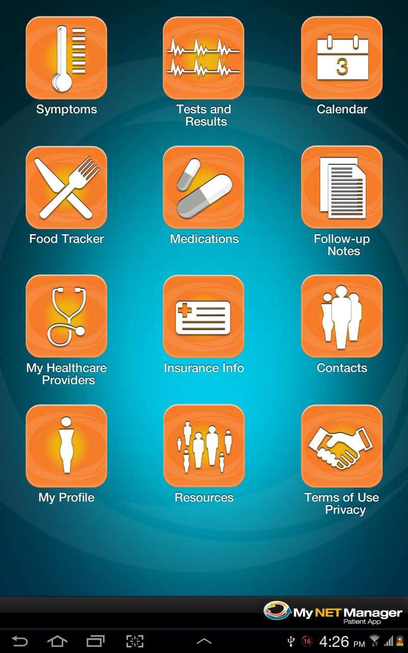 The new My NET Manager Patient App is for patients suffering from Neuroendocrine tumors. The app helps patients organize information specific to their disease state and track appointments, their symptoms and graphing those symptoms, track tests results and graphing those results as well, track updates to their medications and insurance. The app also has a diary to track the foods you eat and a place to record notes about your symptoms, tests and appointments. The app also provides valuable information about NETs (Neuroendocrine tumors).