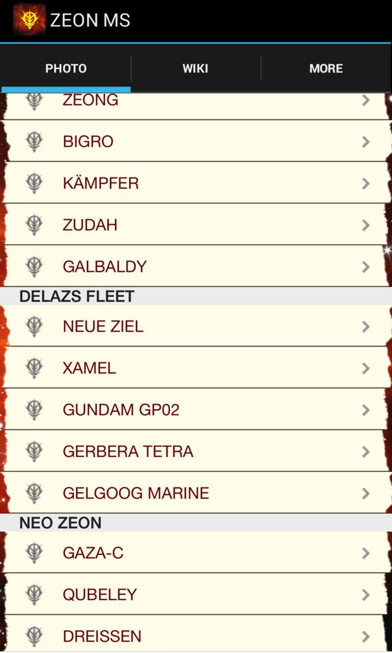 Aside from photos, you can enjoy many other features including "ZEON MS wiki library".
