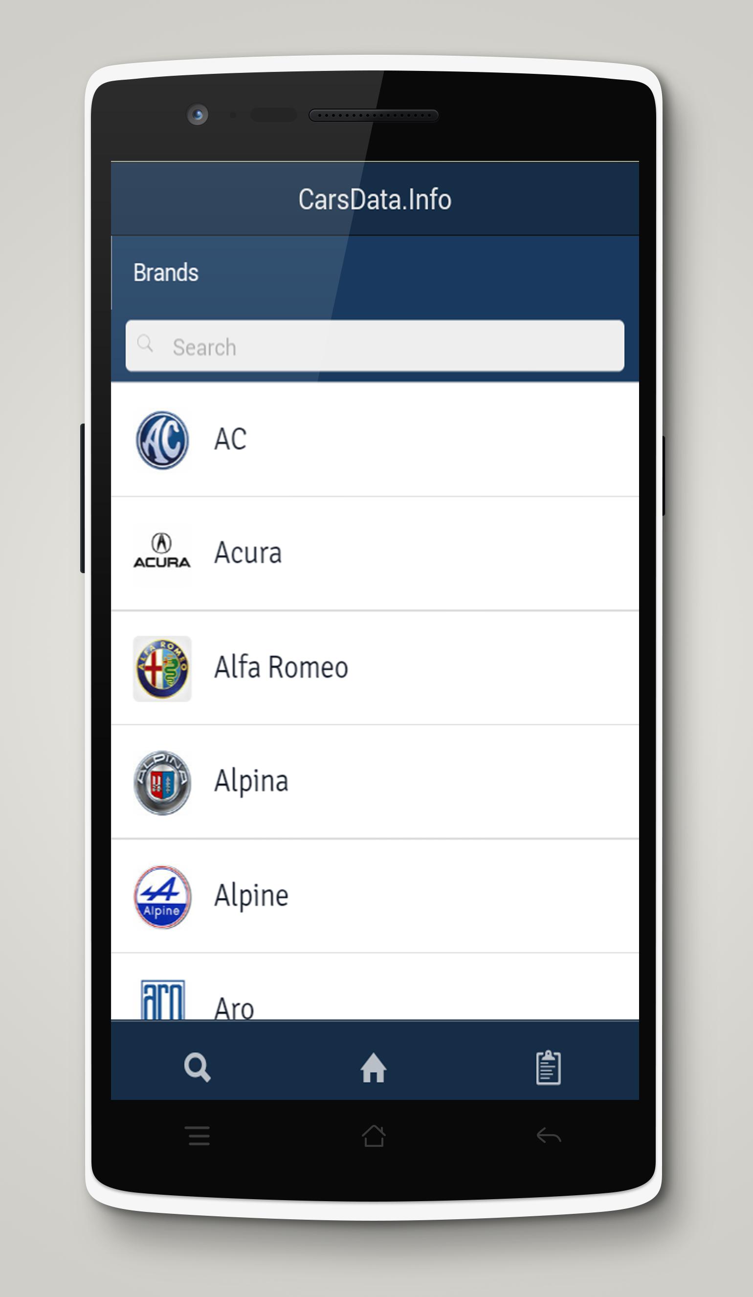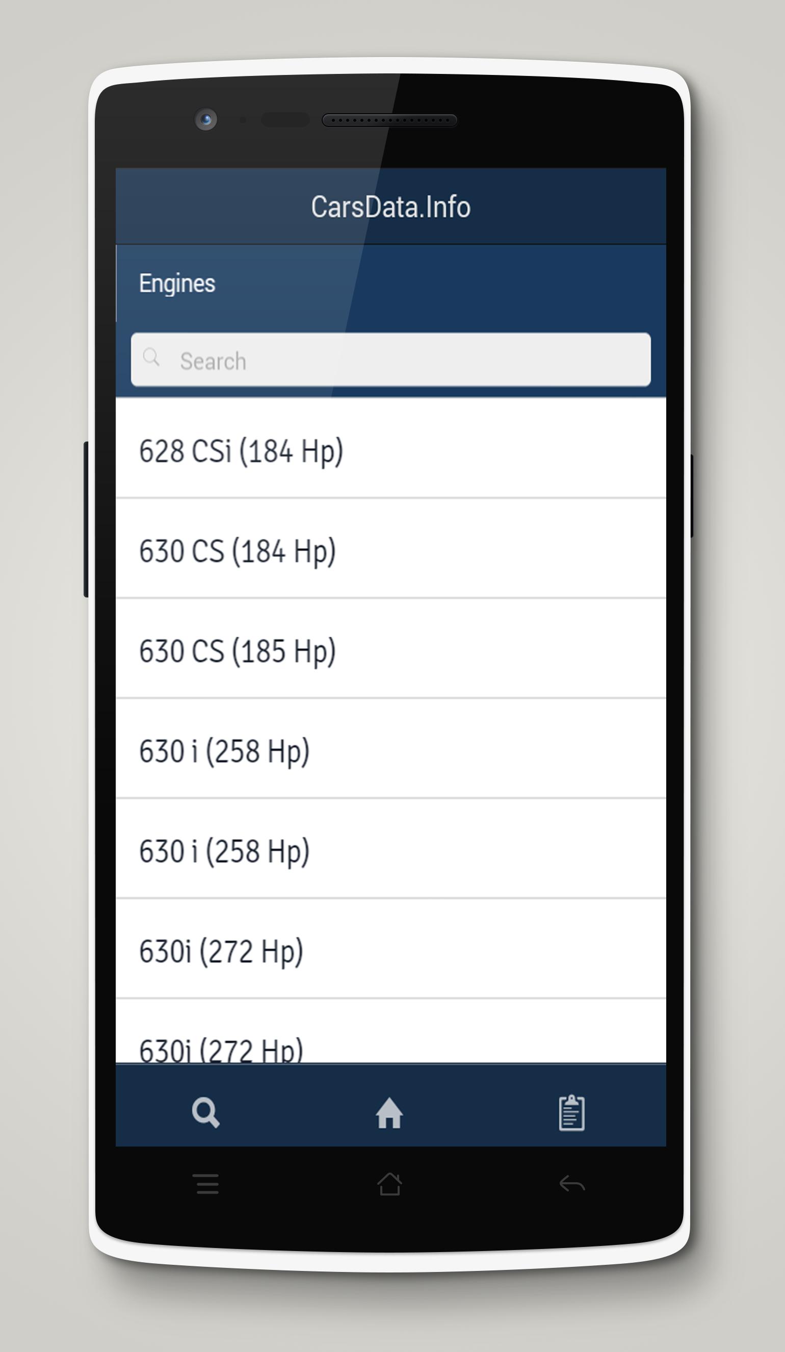 Carsdata represents information mobile application with autodata and technical specification of cars. Here you can find characteristics of your car vehicle fast and easy. Every model contain information for horse power, year of putting in production or stopping this, maximum speed, number of cylinders and other. Also here you have option for compare two models of cars. Requested model may be selected from lower list or found through search engine. The data base contains over twenty thousand different models of cars.