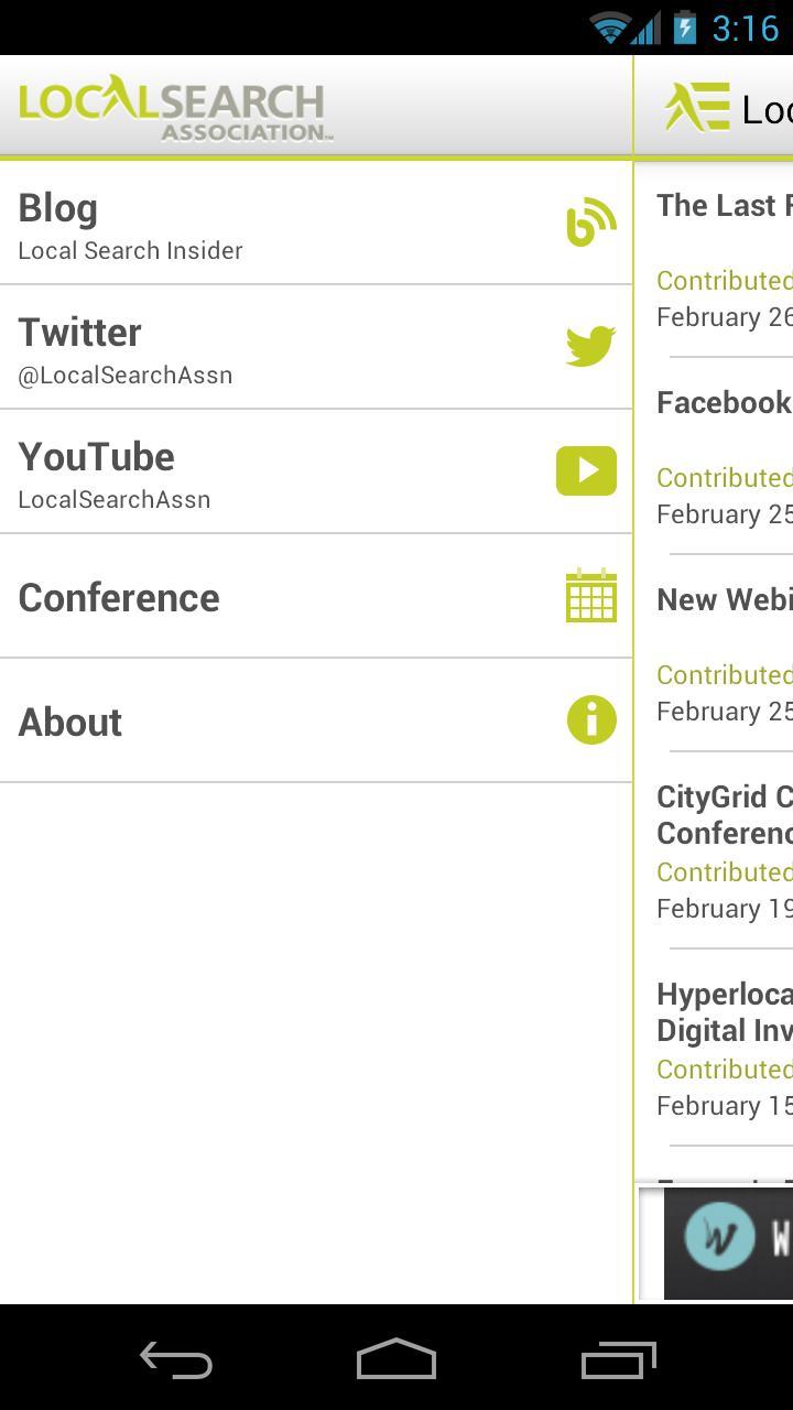 The free Local Search Association app keeps you connected to all the latest in local search. From the hottest social media trends to the future of mobile advertising, stay on top of breaking news with up-to-the-minute information. Plus, if you’re a regular attendee of the annual “Search Starts Here” conference, the app makes it easy to find out who the next speaker is or to locate a company that you want to do business with, all from your phone. Don’t miss a thing at conference and keep the local search industry just a few taps away with the Local Search Association app.