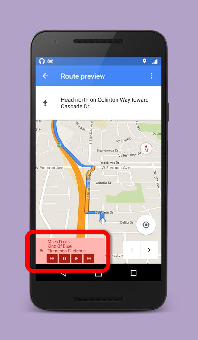 In addition, it is possible to also display of media control buttons, you can manipulate the music playback even while using the navigation application.