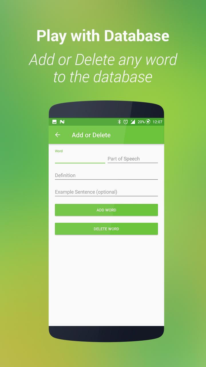 Offline & Faster: As it is an offline dictionary, getting the definition is very fast and convenient. (Internet connection is not required).