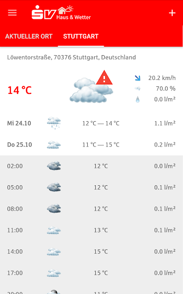 The app "SV House & Weather" provides you with detailed weather data for Germany & Europe. It includes among others: