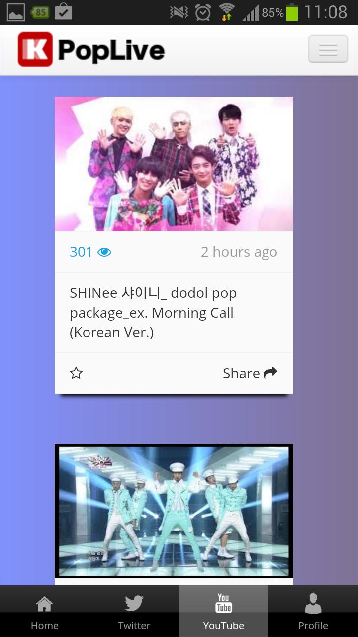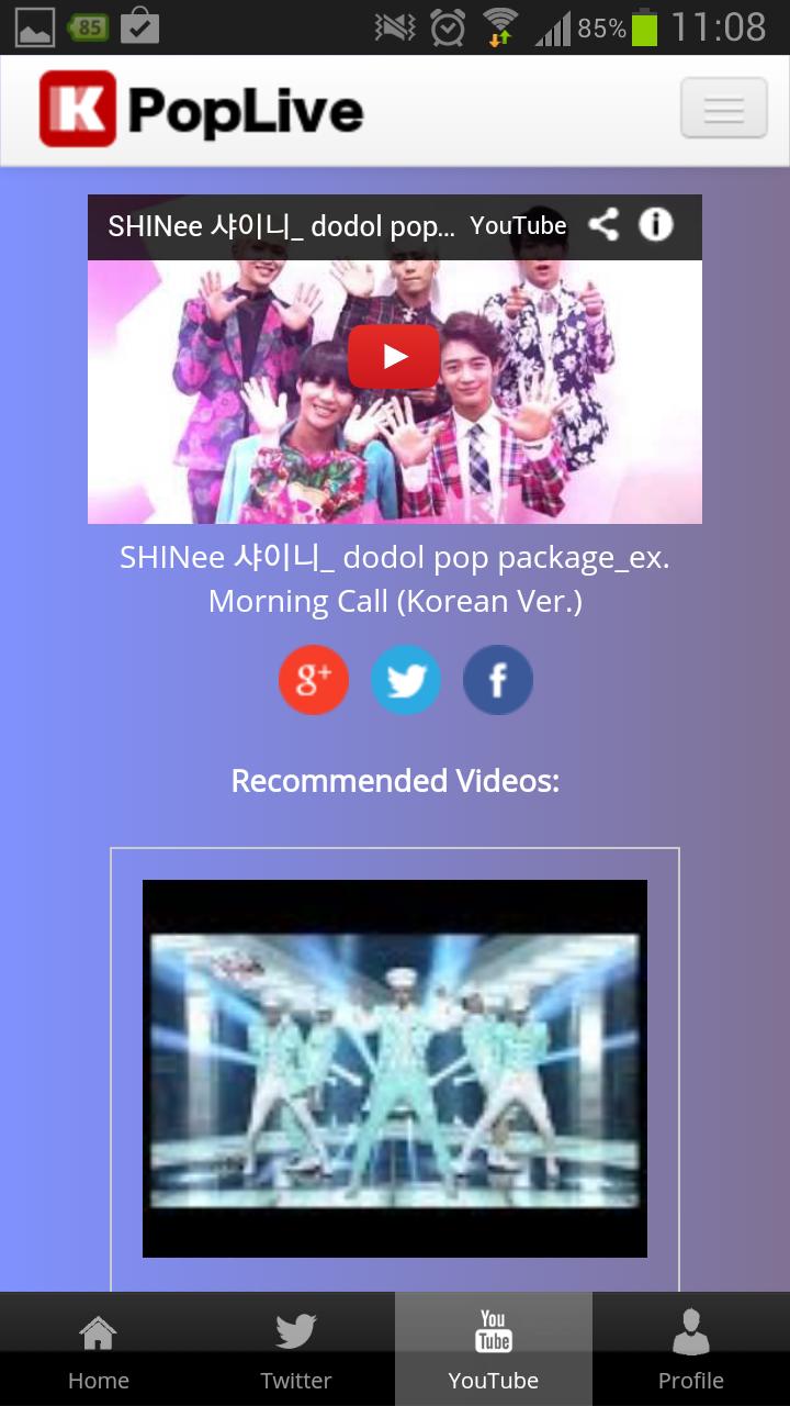 If you wish to receive the latest K-pop happenings, twitter feeds, videos from your favourite K-Pop stars, this app is designed specially for you. Receive the latest tweets and YouTube videos of your favorite K-Pop artistes and share them with your friends via Twitter, Facebook or Google+!