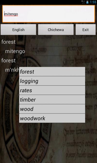 Chichewa English Dictionary – travel dictionary to translate Chichewa to English displaying a list of words in English. The dictionary also translates from phonetic English to Chichewa. Copying a word from the translated list for a reverse translation can be used to find synonyms and to understand the broader use of the English word in the Chichewa language. Although the Chichewa English dictionary does not provide definitions or examples, the use of the translation software in this way provides you with a mechanism to better understand English words in the Chichewa context without the need for definitions. 20K references.