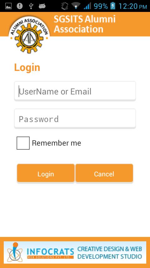 App for SGSITS Indore Alumni Association. This allows users to search for regietred members under official Alumni body of SGSITS, Indore. Also allows PUSH notification service to criculate any message to all Alumnus who downlosed and installed this App.