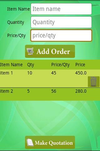 You can listen the customer order through your phone and make your quotation in the phone itslelf at any where any time.