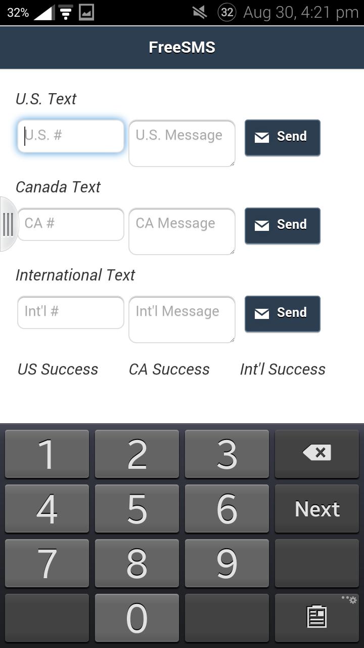 Send a Free SMS with this app, including to U.S. Canadian, and Int'l Numbers