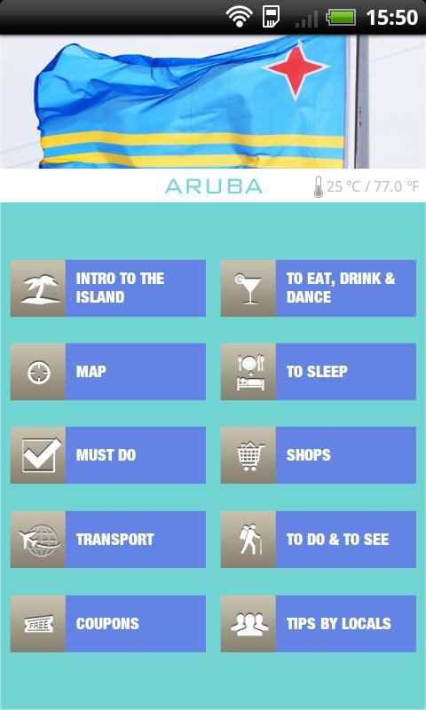 . The App has surprising new information and facts. The category TIPS BY LOCALS for example, where premises itself reveal their most special places or experiences of the island, and tell what not to miss on Aruba.