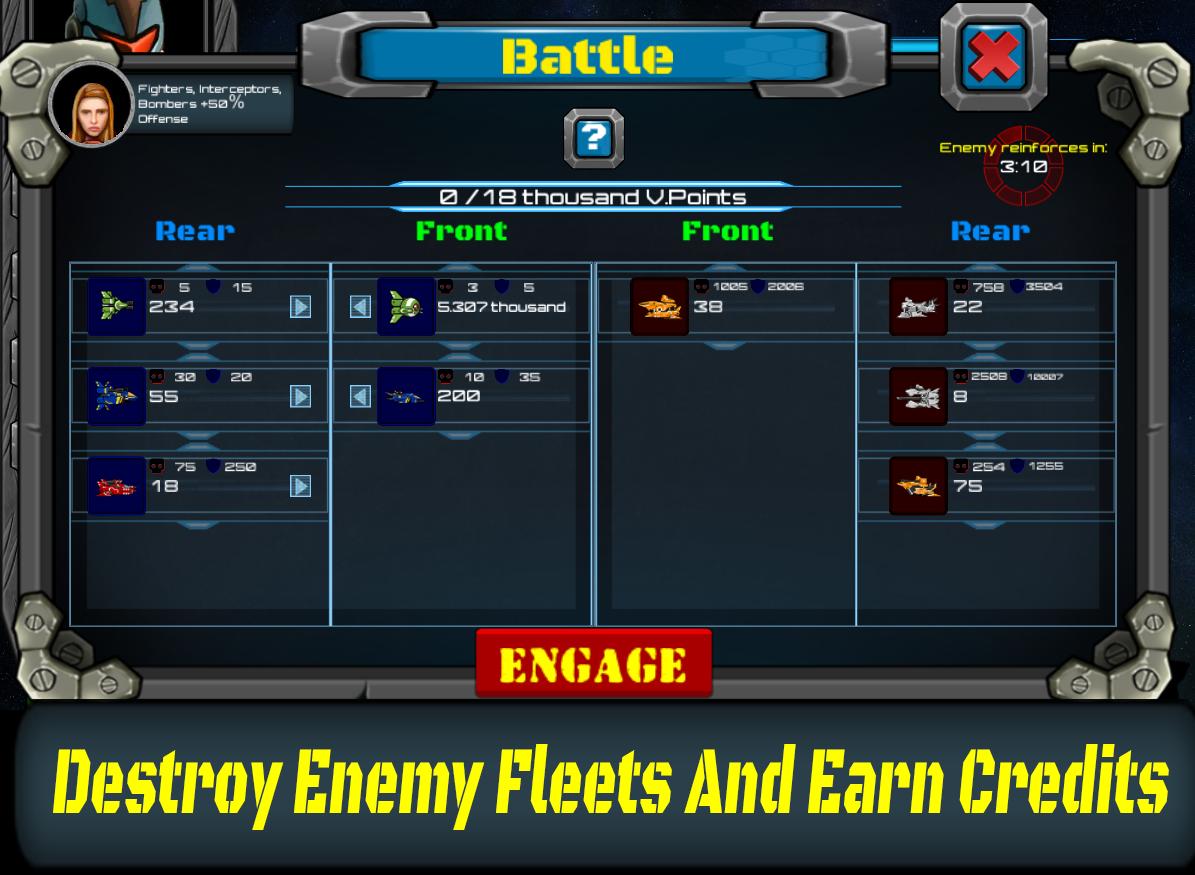 - Acquire Investors to receive bonus credits for each surviving fleet unit after a battle.
