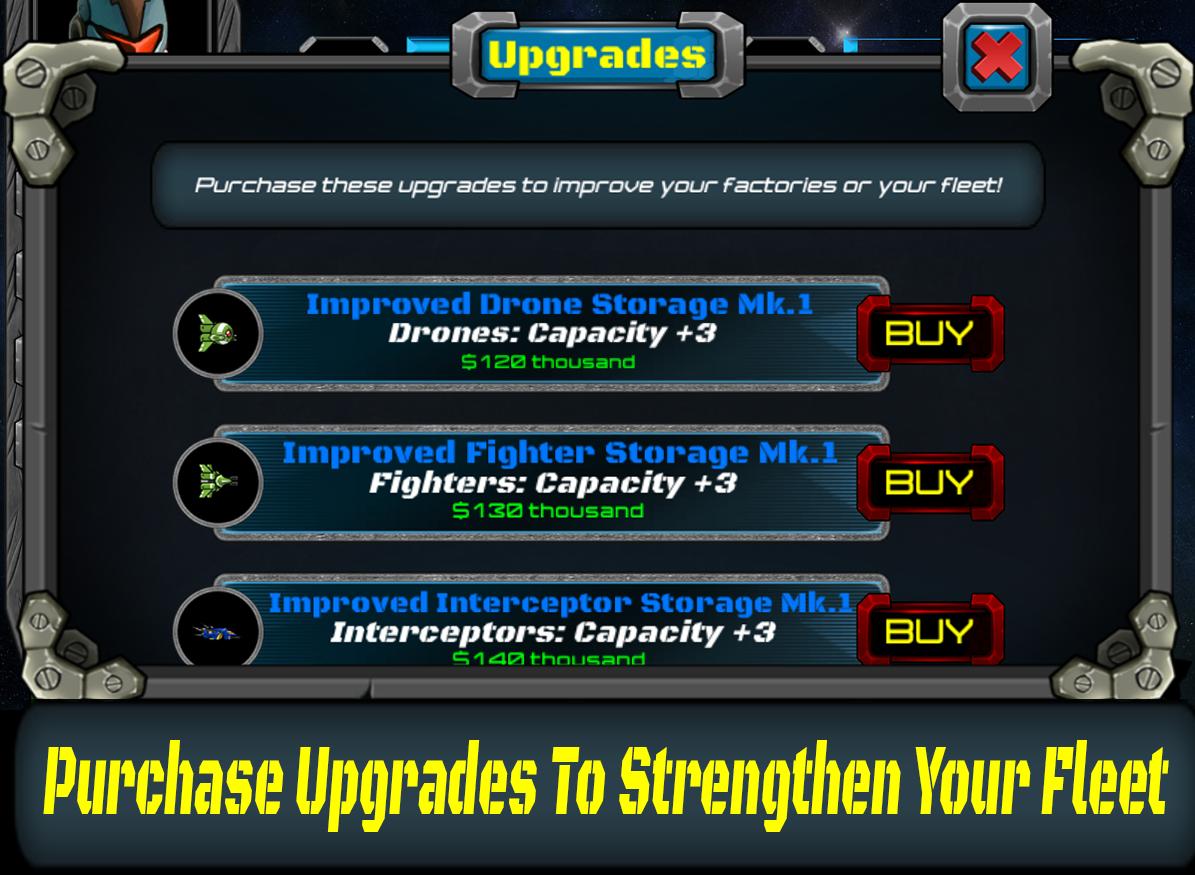 - Purchase factories to produce up to 10 different ship types, from the lowly Drones and Fighters to the massive Cruisers and Dreadnoughts.