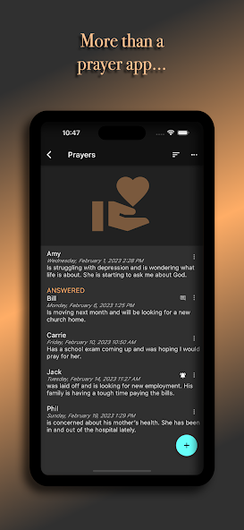 - Mark prayers as answered, praise, trust, confess, etc...