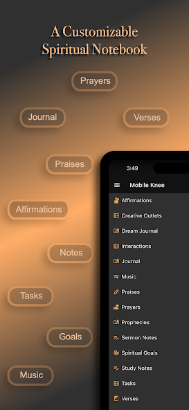 Mobile Knee is more than just a prayer list... more than just a journal app... it's a customizable spiritual notebook.