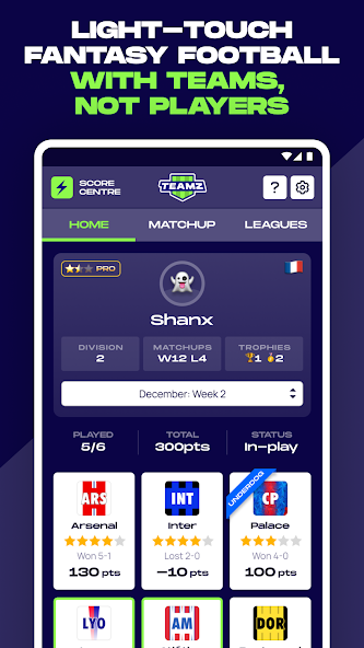 Fantasy football doesn’t have to be a chore - pick teams instead of players for a simplified and snappy fantasy football experience.