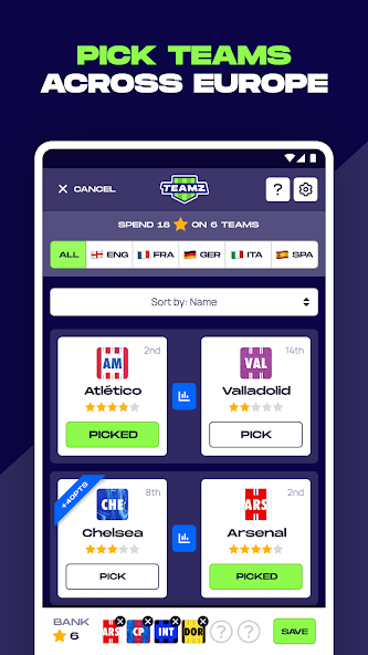 PICK TEAMS ACROSS EUROPE