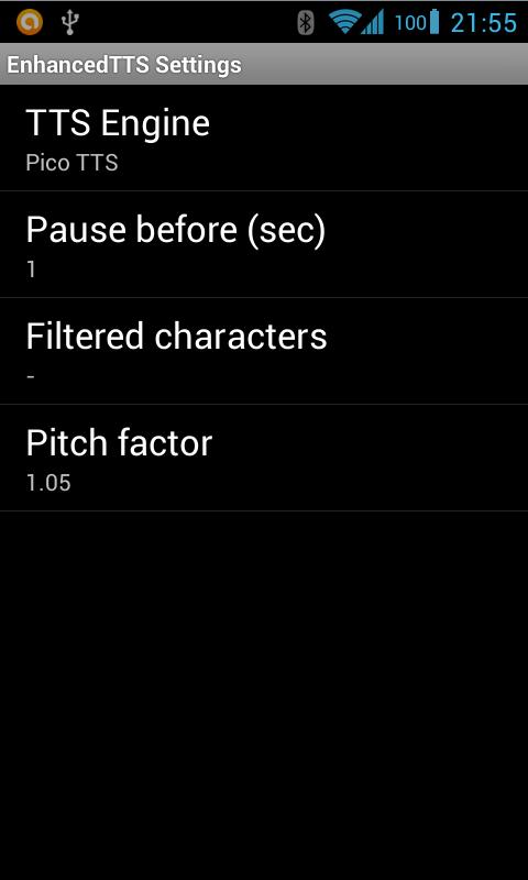 This is a Text-To-Speech (TTS) engine that wraps around any standard TTS engine for adding extra settings such as : Delay before, pitch rate factor, and excluded characters.
