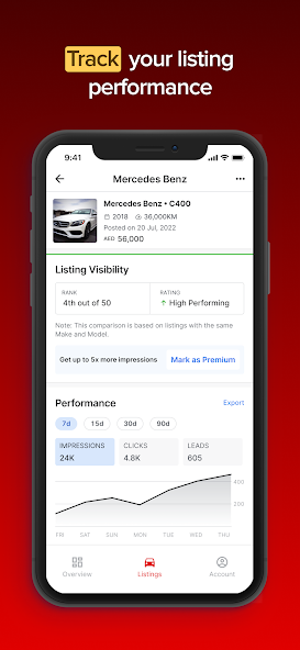 Manage your dubizzle car listings on the go and optimize their views and leads with a range of exclusive features: