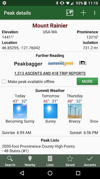 Find mountains to climb and track your progress against hundreds of peak lists.