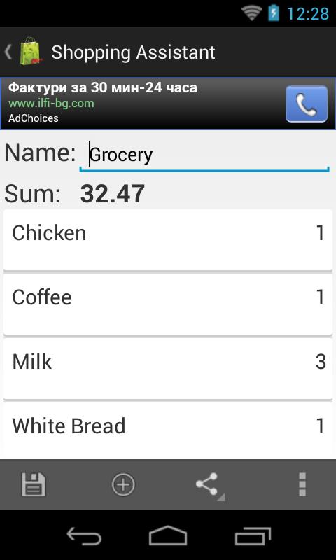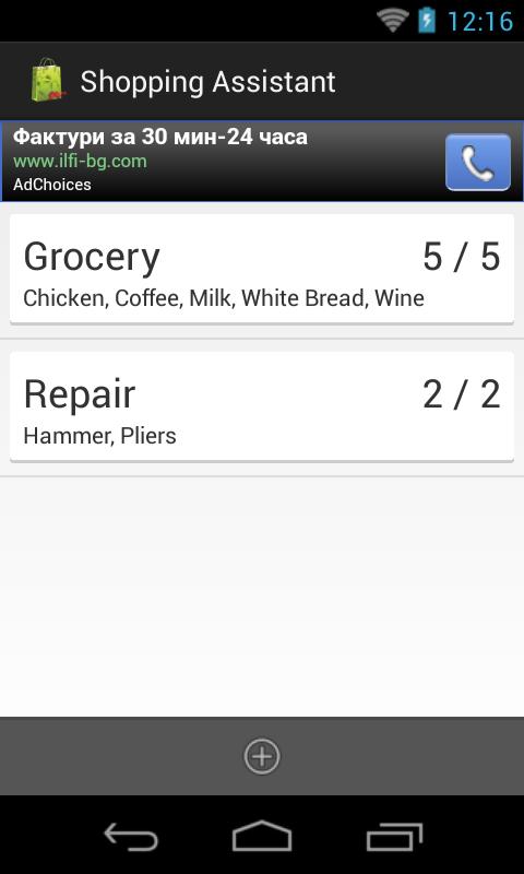 Shopping Assistant which makes possible to create list of products and also the lists can be shared via email.