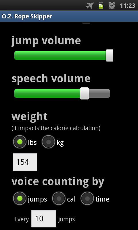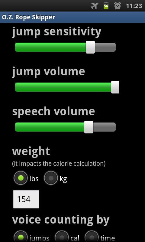 This is a speaking application, it will count for you during your skipping rope workouts (or any other kinds of jumping) – you set the number of jumps/calories/minutes (there are a calorie counter and a stopper as well) and the app informs you by voice each time it reaches the number.