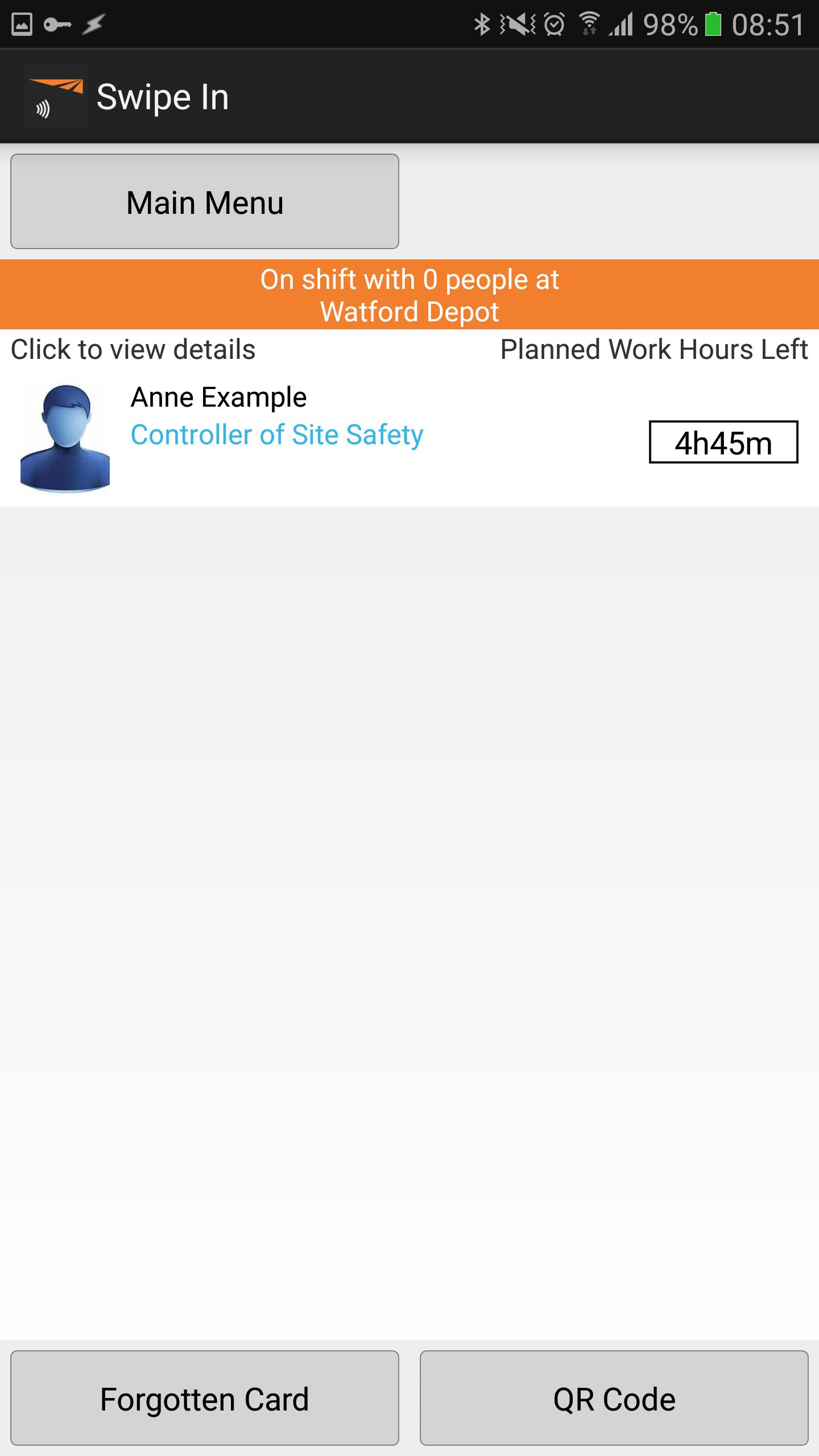 4. Depending on the card presented, either the card itself will be shown or a menu of options will be displayed for authorised card checkers.
