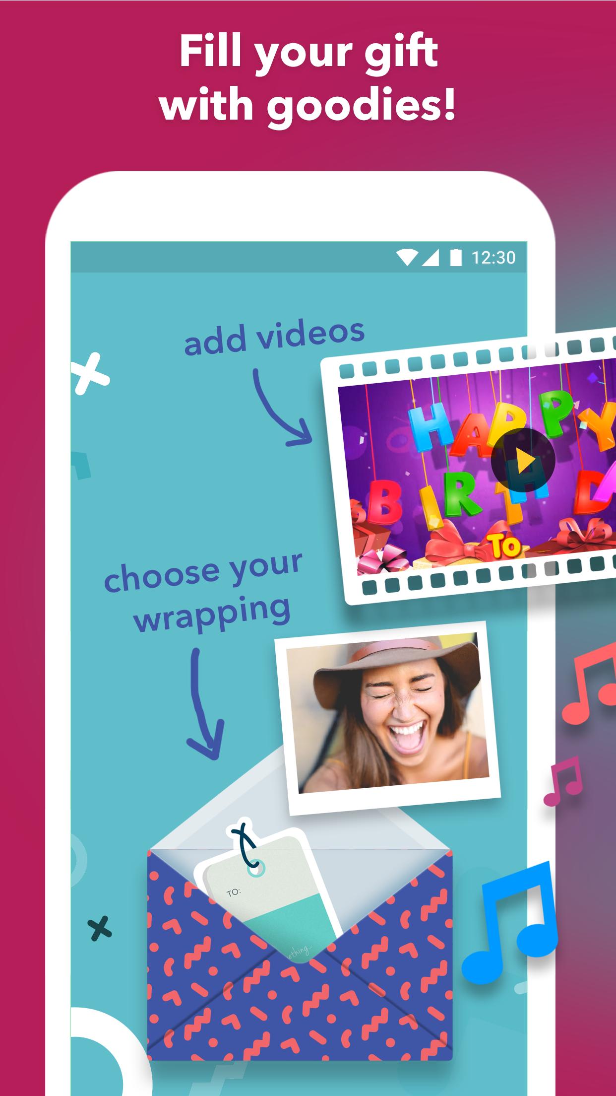 • Personalize your gift in anyway you want! Choose the wrapping paper, add pictures, gifs, videos, notes, unwrap sounds, and more!