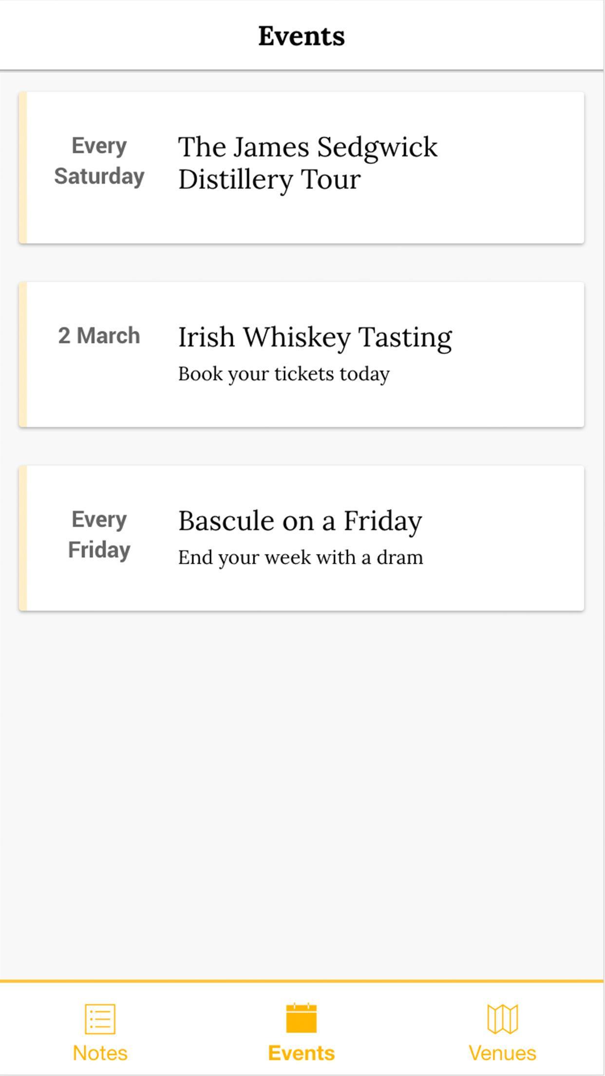 A simple note-of-the-day app to help you up your whisky game.