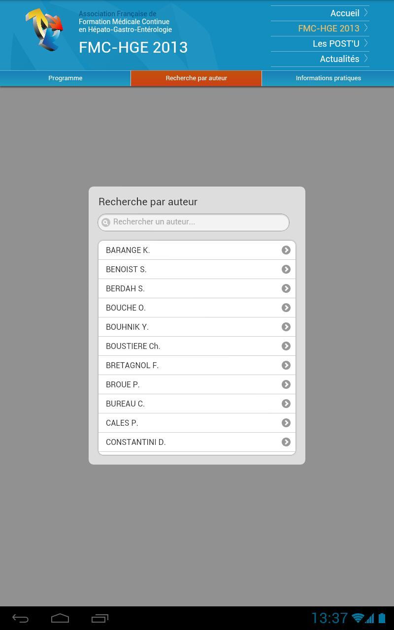 Application for tablet of the FMC-HGE (French National Association of Continuing Training in Hepato-Gastroenterology).