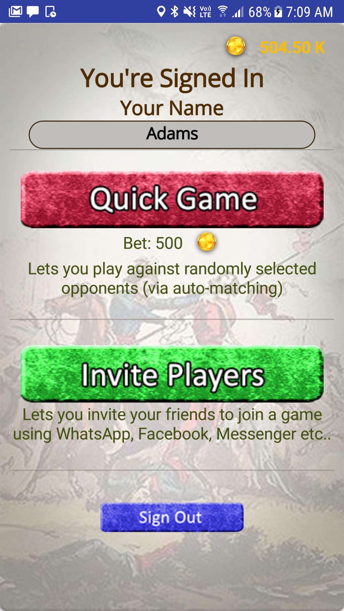 • Send game invitations (URL) to your friends or contacts on social media (like Google Plus, Facebook, etc.), messenger (like WhatsApp, Hangouts, etc.), or via Text SMS.
