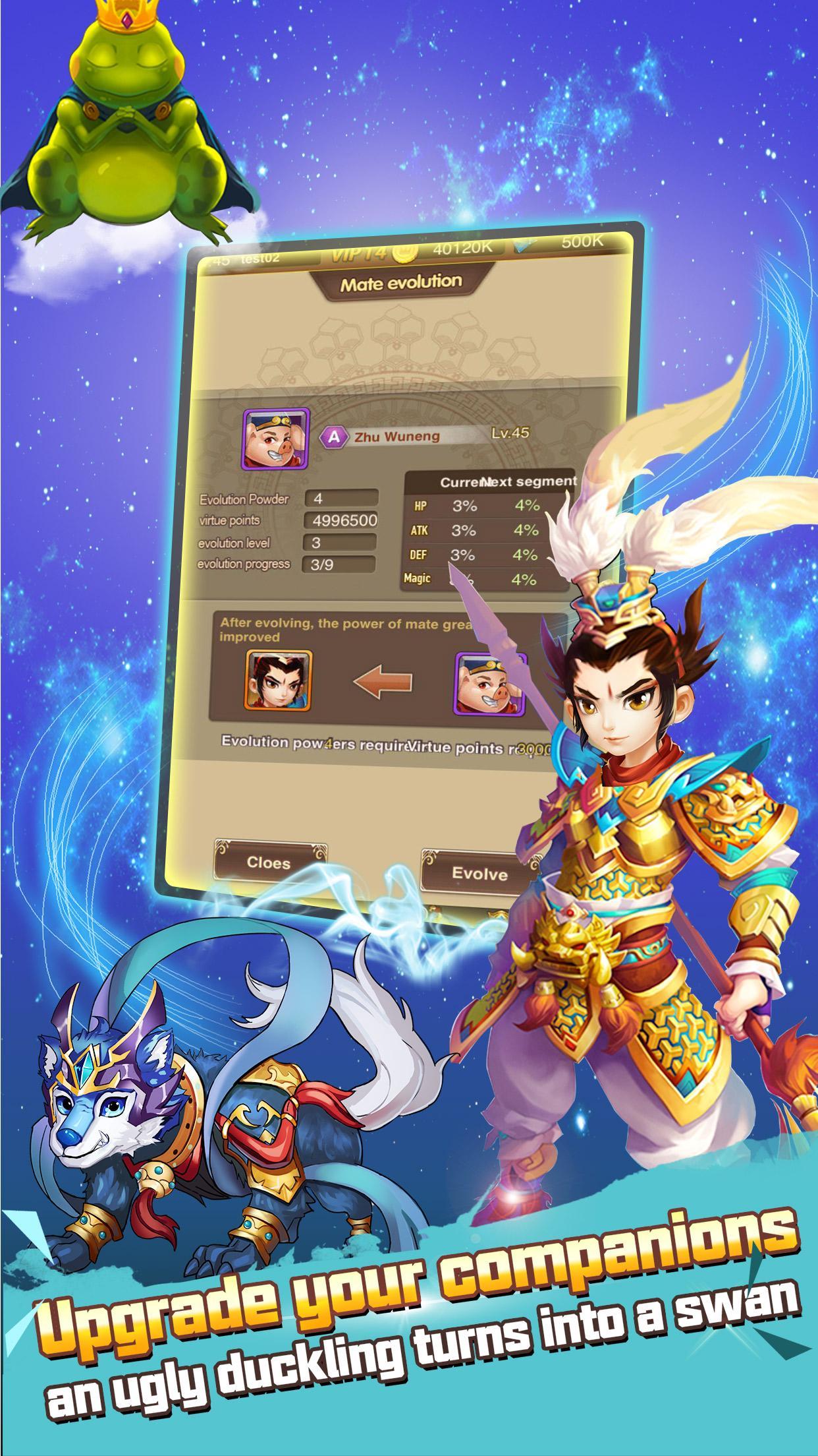 5. Lovely Companions: Hundreds of famous fairy tale characters will become your companions. Pay attention to their character sheet tab and organize your own super team!