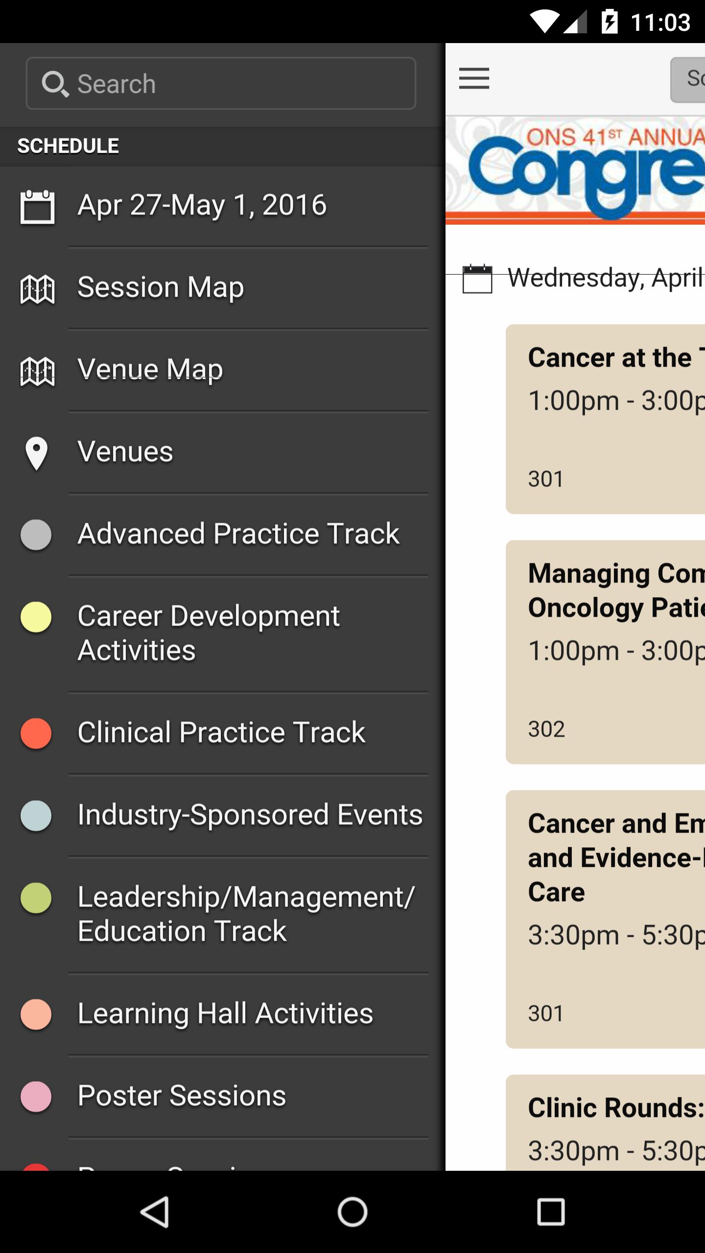 Browse the entire schedule for ONS 41st Annual Congress. You can filter by color-coded types, venues or search for what you need. Get the full details of every event without having to crack open an event guide.
